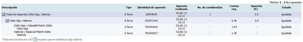Vamos con la primera apuesta para la Liga de los Blogs en el mes de diciembre. La apuesta en cuestión será una combinada de dos partidos: el primero de ellos será el Valencia – Espanyol, correspondiente a la liga BBVA. El otro, será el Celta de Vigo frente al Sabadell, encuentro de la Liga Adelante.